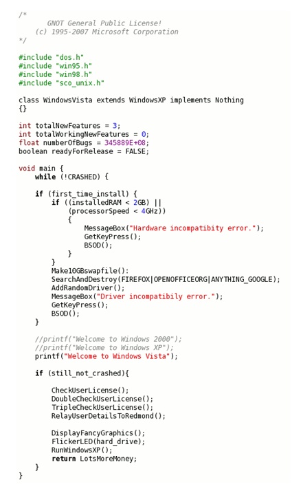 Nehéz szó az inkompatibilis, de hogy ennyire. Meg van néhány hiba a kódban, de a WindowsVista osztály elég kifejező.