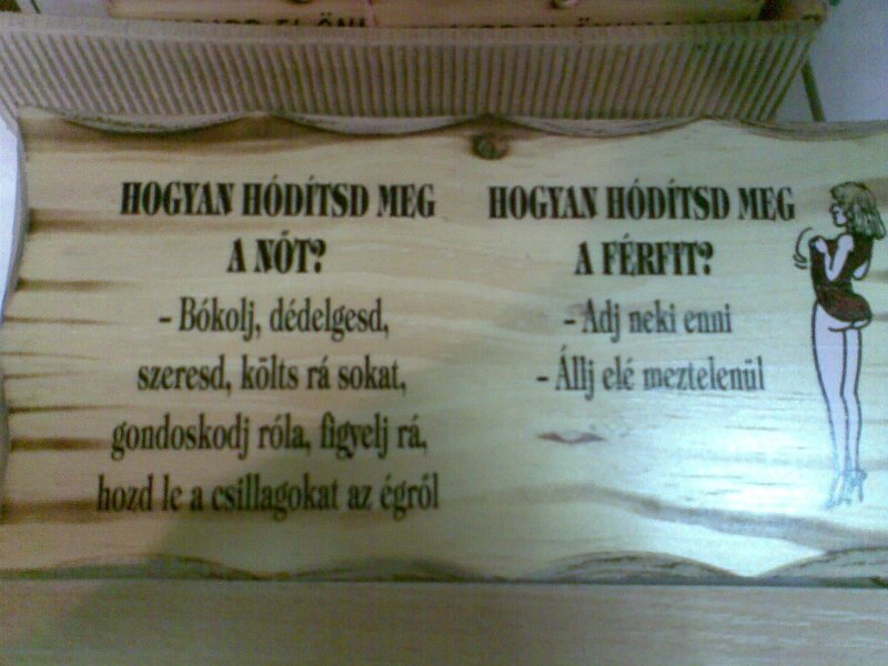 Főzzé, mossál, takarítsál, legyél néma, ne szeressed a ruhákat, szüleid legyenek halottak, ha elfogy a pénz gyere le kocsmába és hozzál még, legyen jólfizető állásod, szeressed a focit! Emelett még legyen topmodell alkatod is meg szép arcod