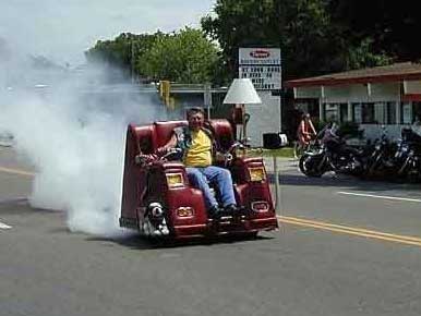 Ilyen tényleg létezik! Egy ember megcsinálta, hogy vett egy motort, kereket szerelt a kanapé alá, mellé erősített egy állólámpát, az volt a féklámpa, meg a kötelező világítás és még a kényelem érdekében beszerelt egy kerek pizzatartót. Abból, amikor állt evett, amikor vezetett, az volt a kormány. Te is megcsinálhatod, ha van 1 millió dollár fölösleges pénzed (ebből építed meg a kocsit), meg jogsid (ennyi elég az igazoltatáshoz).