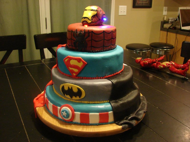 Meg van az esküvői torta! (Persze 2 Vasember fejjel a tetején.)