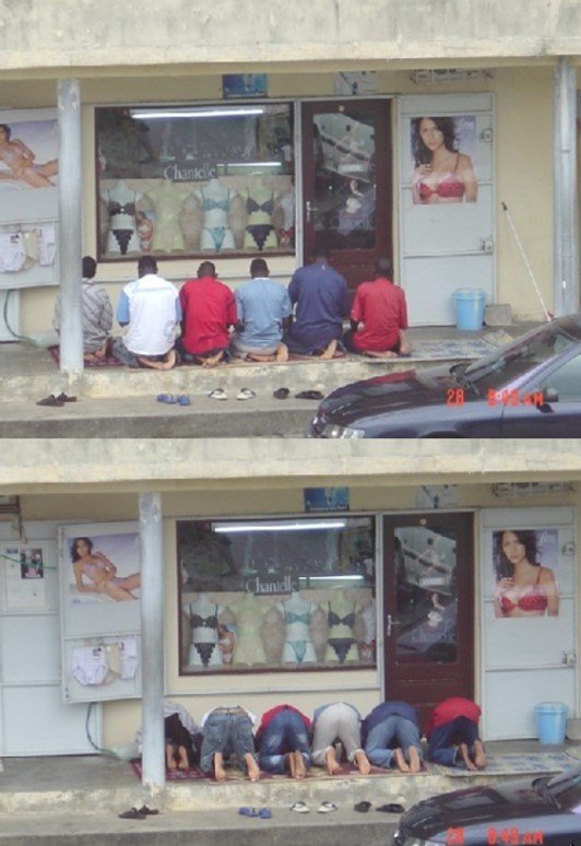 Hát, igegen imádkozni, Mekka felé fordulva... Monnyuk elég szívás, kiváncsi vagyok, hogy menekült el aki készítette (a képet) .