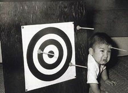 A papának is jár a játék néha. Na fiam, most megtanítalak, hogy kell optimistának lenni. Ne sírjál már, a betyárját! Örülj neki, hogy csak cuppanós nyílvessző volt! :)