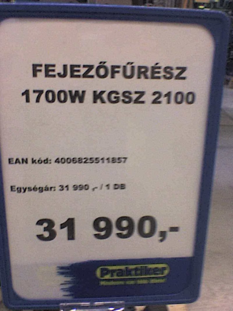 Rákerestem az EAN-kódra. Ez egy körfűrész-gép, olyasmi felépítésű, mint egy flex. Viszont 85 euró az új ára. Praktiker vagy 10.000-el többért adja. Mindenre van ötlete.