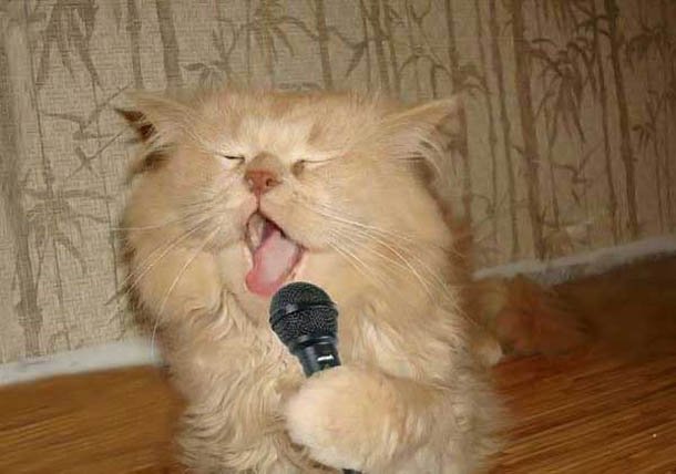 Mikrofónpróba 1, 2, 3... Miau! Miau! Csak nehogy bekapja a mikrofont