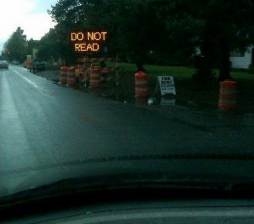 Következő sor: Why do you still read it? Ez is egy jópofa tábla: Vigyázat! A tábla széle éles, ne érintse meg!